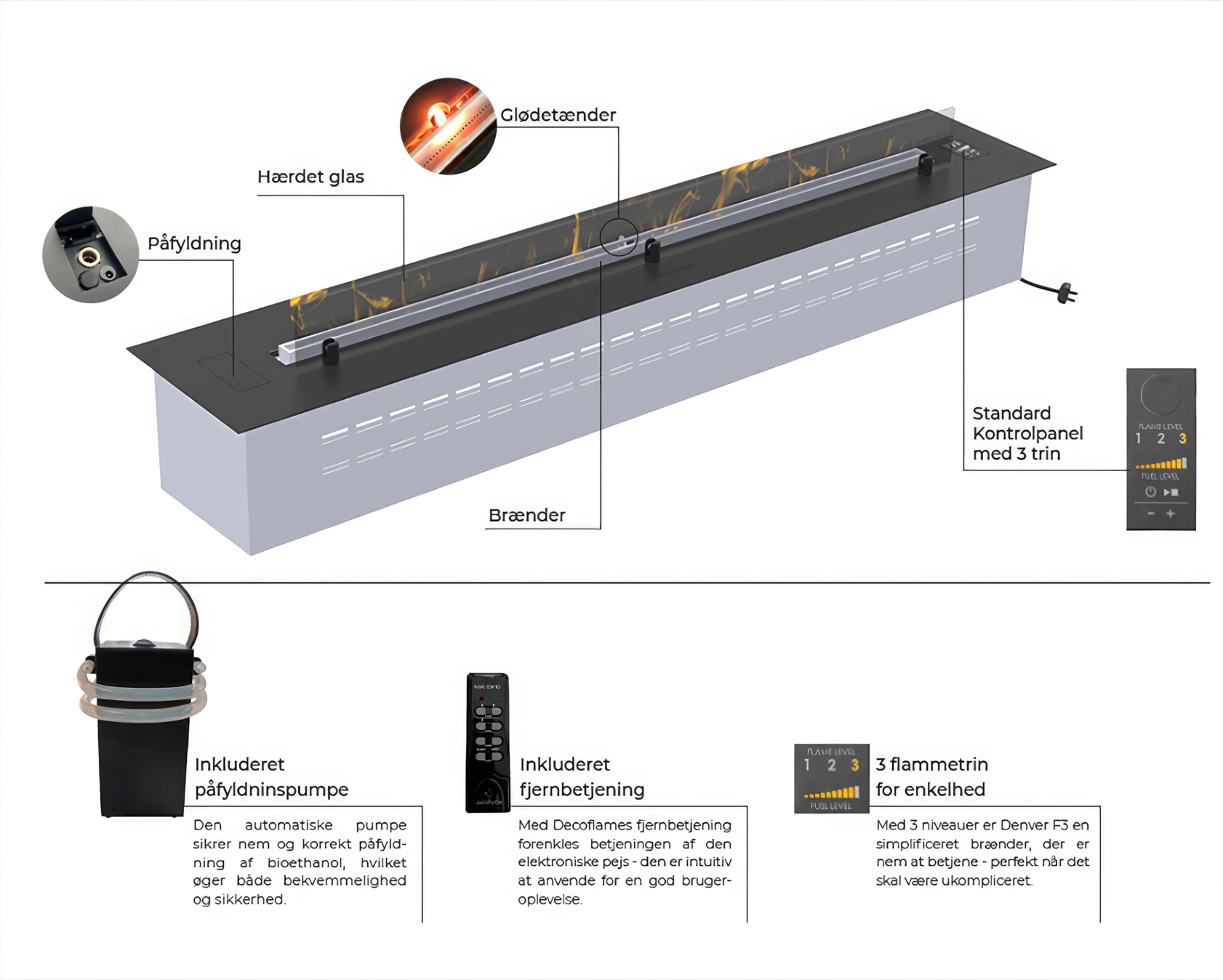 Чтобы сделать Denver F3 более экономичным, Decoflame оптимизировали методы производства, не ставя под угрозу высокие стандарты качества Decoflame. Результатом стал стильный и экономичный биокомин, который по-прежнему обеспечивает превосходную производительность.