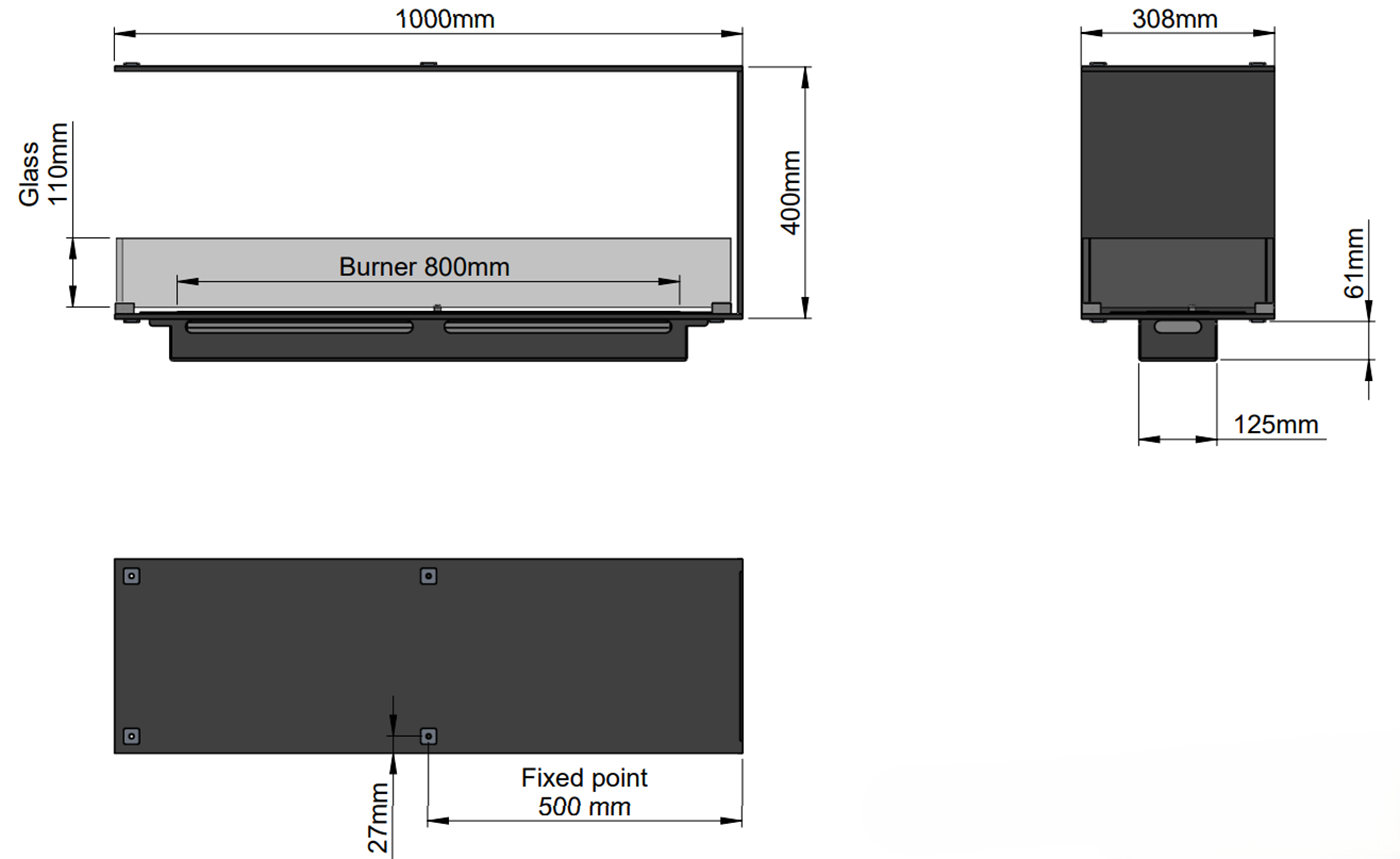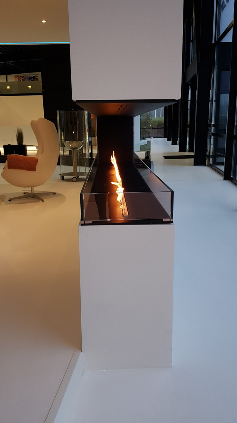Монреаль 1000 мм выпускается в разных вариантах. Эта конкретная модель с открытой передней, задней и одной боковой стороной. Биокамин Montreal 1000mm Торцевой сквозной 3-х сторонний особенно привлекателен, поскольку его можно рассматривать с нескольких сторон. У вас есть возможность насладиться камином независимо от местонахождения