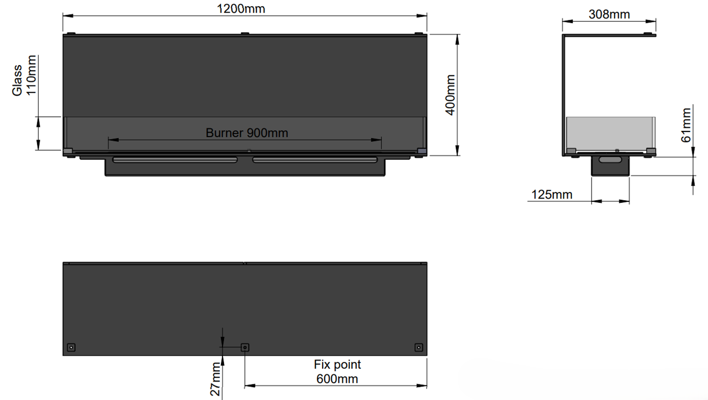 Монреаль 1200 мм выпускается в разных вариантах. Эта конкретная модель с открытой передней и двумя боковыми сторонами. Биокамин Montreal 1200mm Торцевой 3-х сторонний можно увидеть спереди, а также с правой и левой сторон, что делает его особенно привлекательным, поскольку вы можете наслаждаться камином с нескольких сторон.