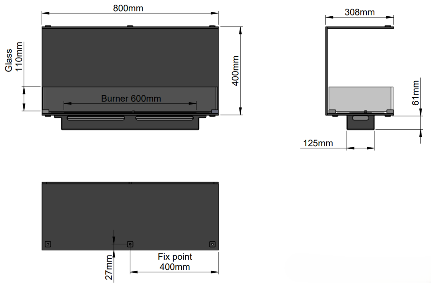 Монреаль 800 мм выпускается в разных вариантах. Эта конкретная модель с открытой передней и двумя боковыми сторонами. Биокамин Montreal 800mm Торцевой 3-х сторонний можно увидеть спереди, а также с правой и левой сторон, что делает его особенно привлекательным, поскольку вы можете наслаждаться камином с нескольких сторон.