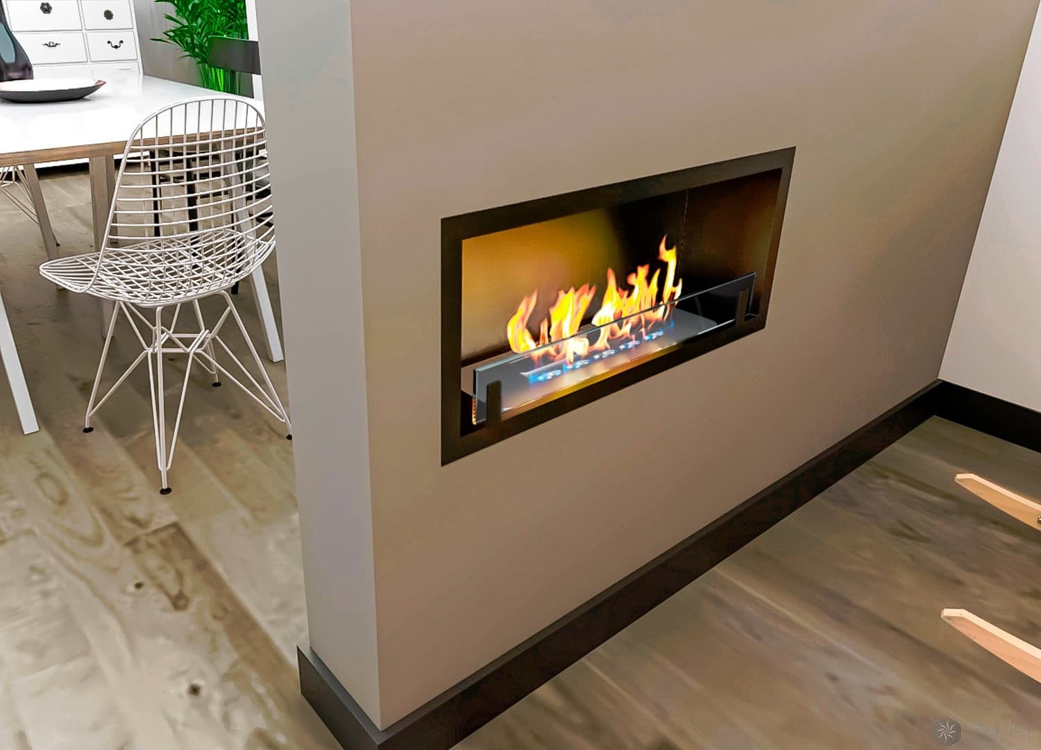 Биокамин работает на жидком экологичном топливе. Состав на спиртовой основе при сгорании не выделяет дыма, гари и копоти. Поэтому устройство не привязано к коммуникациям и его можно инсталлировать в любую ненесущую конструкцию. В том числе – в короб из гипсокартона или мебель из МДФ. Для теплоизоляции в последнем случае достаточно минеральной ваты и фольги.