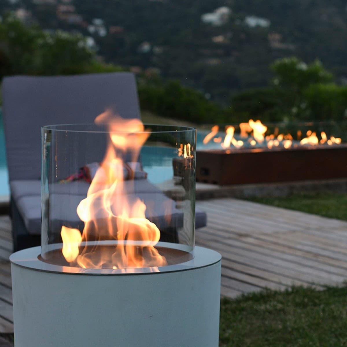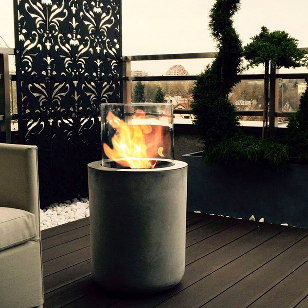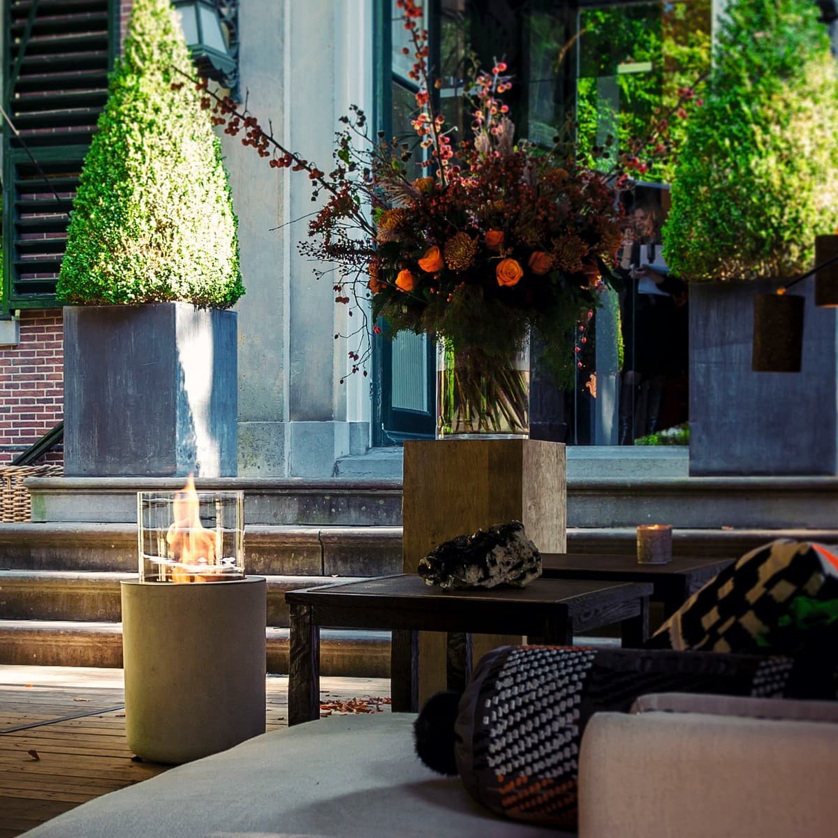 Jar Commerce – модель, выполненная по технологии Glassfire®, на основании из бетона, может быть установлена в помещении или на открытом воздухе. Контраст холодного бетона и теплого огня – оригинальная идея дизайнера Кристофа Пийе. Вы можете разместить биокамин в любом удобном для Вас месте и наслаждаться танцующими бликами огня. Для большей безопасности внутренняя часть горелки заполнена керамическими волокнами высокого впитывающего свойства, что предотвращает пролитие топлива Fanola® и позволяет камину гореть до 10 часов. Jar Commerce – это прекрасное решение для ресторанов, кафе, отелей, SPA-салонов. Пара биокаминов, установленных на улице перед входом, несомненно привлечет внимание и отразит особую торжественность момента.
