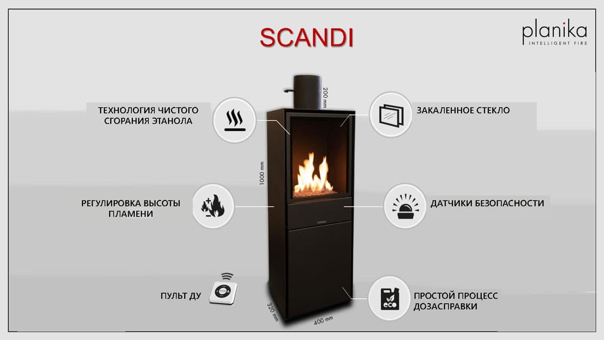 Автоматический биокамин Scandi работает на уникальной запатентованной технологии горения паров этанола Burning Ethanol Vapours (BEV). Эта технология была разработана и запатентована самой компанией Planika. Камины Planika, работающие на данной технологии, при горении не выделяют дым и запах, а выделение СО² снижается в 10 раз. Для биокамина Planika Scandi – не требуется установка дымохода, а это значит, что его можно разместить даже в городской квартире. Для обеспечения максимальной безопасности, установлена защитная блокировка от включения камина детьми Child-Lock.