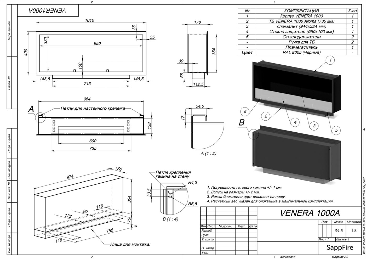 Биокамин Venera 1000 (SappFire) производитель SappFire
