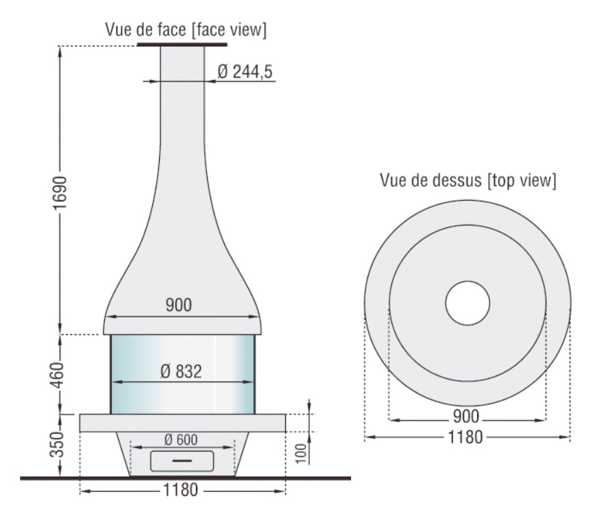 Форме металла нет предела, купол дымохода Alexia 995 тому подтверждение. Жан-Клод БОРДЕЛЕ, когда создавал ее, придумал форму бутылки, возможно, бутылку из Лангедока, поскольку мастерские расположены очень близко к виноградникам. Этот дымоход требует от производителей каминов очень точной работы с такой толстой сталью, поскольку после того, как форма придана, для достижения идеальной отделки необходим длительный процесс ручной шлифовки. Эстетический баланс этого камина достигается за счет идеально продуманного основания размера XXL.