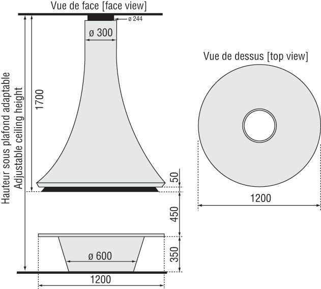 Чертеж камина Eva 992 Savane JC Bordelet открытый: