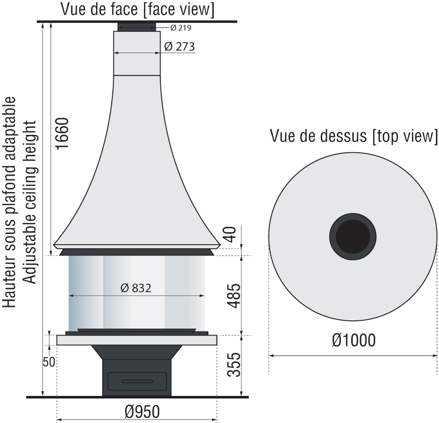 Marina 993 JC Bordelet - это компактный центральный камин, изготовленный по индивидуальному заказу необходимой вам высоты.