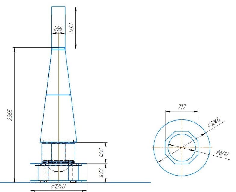 | Ширина | топки: 717 мм основания: 1240 мм (диаметр) |