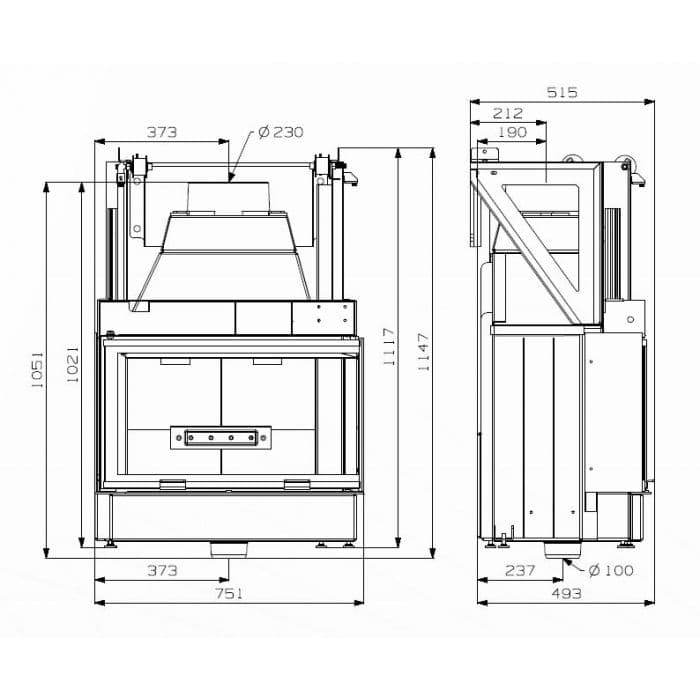 Дровяная топка с угловым стеклом (слева или справа) открывает потрясающий вид на огонь. Обдув стекла потоком воздуха гарантирует безупречную чистоту смотрового окна. Дверь открывается не только вверх с помощью подъемного механизма, но и в сторону. Функция вторичного дожига, система "чистое стекло". Такая топка идеально подходит для пристенно-угловых каминов. Представленная модель имеет мощность 11 кВт, что достаточно для отапливания дома площадью до 110 кв.м. Для топки рекомендуется использовать сухие дрова.
