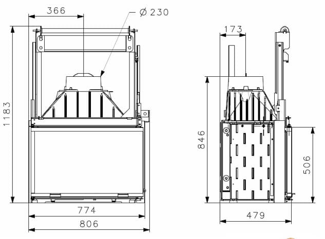 Каминная топка Cheminees Philippe 747 2V PR с корпусом из чугуна оборудована дверкой с угловым стеклом (справа или слева), что значительно увеличивает обзор огня. Дверь открывается не только вверх с помощью подъемного механизма, но и в сторону. Функция вторичного дожига, система "чистое стекло". Для топки рекомендуется использовать сухие дрова.