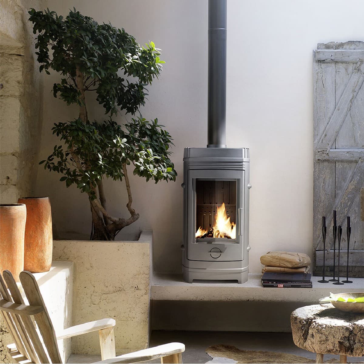 Чугунные печи Invicta Cassine антрацит отличаются необычным дизайном и высотой. Современный стиль сочетается с простотой конструкции и компактностью. Основной материал большинства деталей – чугун хорошего качества, причем стенки корпуса сделаны двойными. Эта маленькая чугунная печь снаружи покрыта жаростойкой краской, а дверца выполнена из стеклокерамики (SCHOTT ROBAX), устойчивой к самым высоким температурам. Размер дверцы позволяет получить хороший обзор пылающих дров.