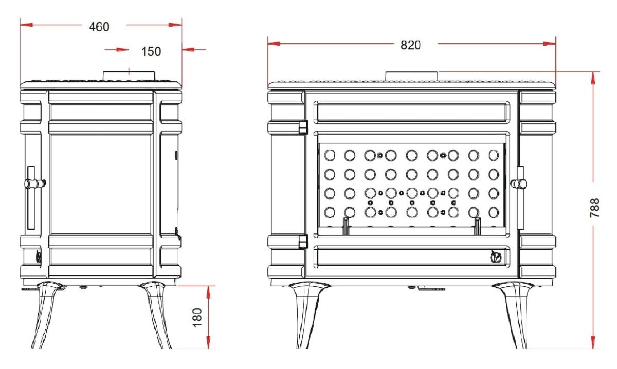 - Диаметр дымохода 150 мм,
