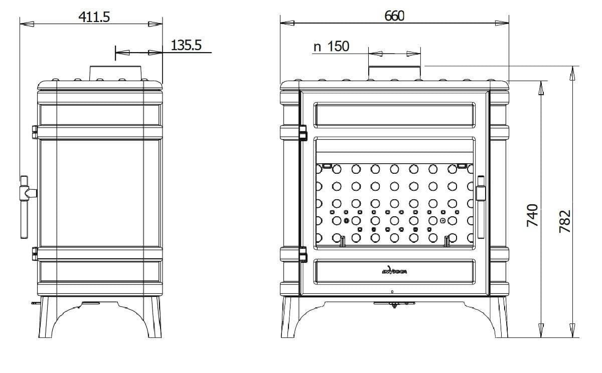 - При производстве печи-камина Invicta задействован чугун наивысшего качества. Этот материал способствует увеличению жаропрочности изделия, а также гарантирует беспрепятственный и быстрый обогрев помещения. Уровень теплоотдачи чугуна достаточно высокий, чтобы процесс обогрева совершался в кротчайшие сроки.