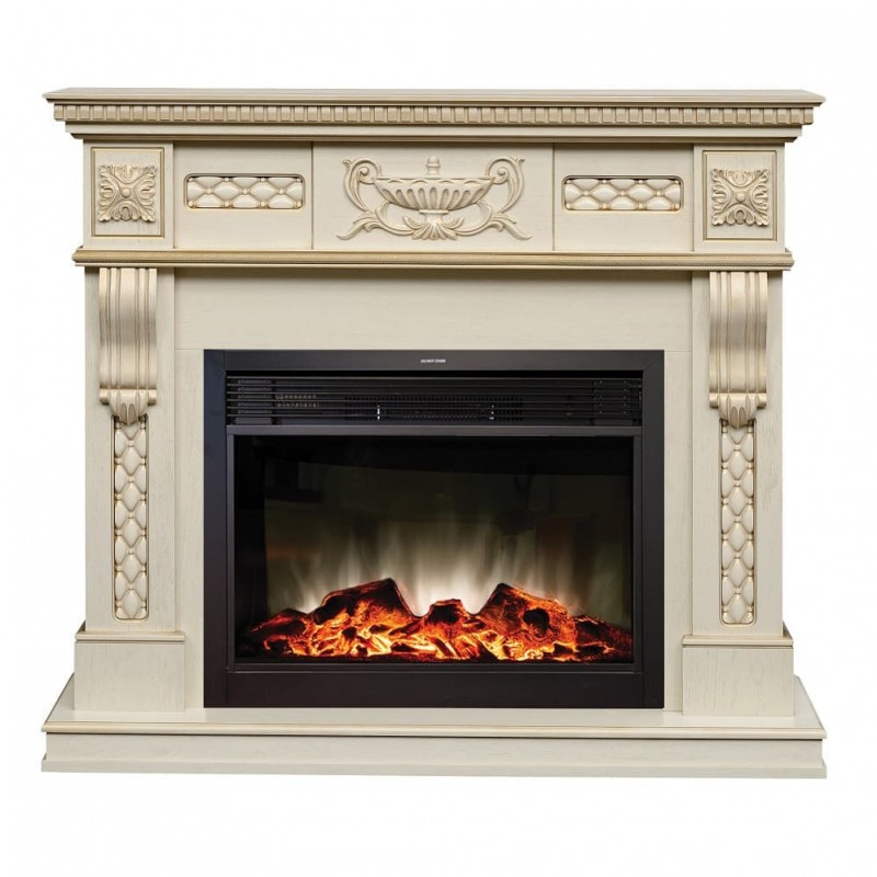 Электрический камин в сборе с очагом MoonBlaze - LUX. Изготовлен из шпонированного МДФ. Портал выполнен в утонченном классическом стиле, органично украшен резьбой по дереву. Очаг с потрясающим эффектом пламени и очень реалистичным муляжом прогоревших дров расположенных за стеклом. С помощью регулятора яркости огня можно задать желаемую яркость пламени. Нагреватель с поддувом спрятан в верхней части очага и обеспечивает обогрев в холодную погоду – имеет два режима обогрева. Функция воспроизведения звука треска дров еще больше усиливает реалистичность огня (громкость регулируется). Наличие пульта дистанционного управления позволит вам полностью расслабиться, не вставая с любимого кресла.