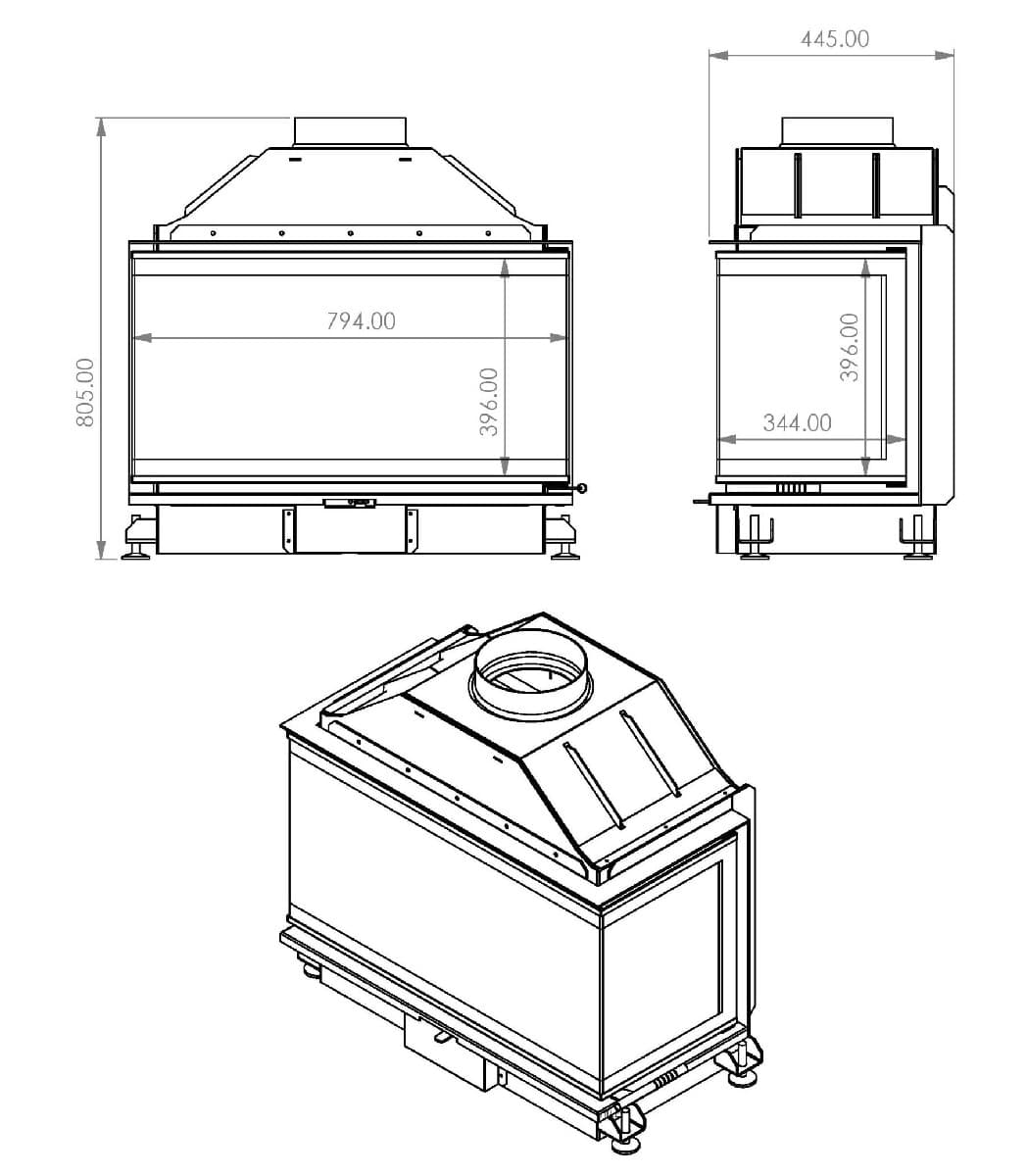 Габаритные размеры A.caminetti CRYSTAL 80 OPEN SIDE