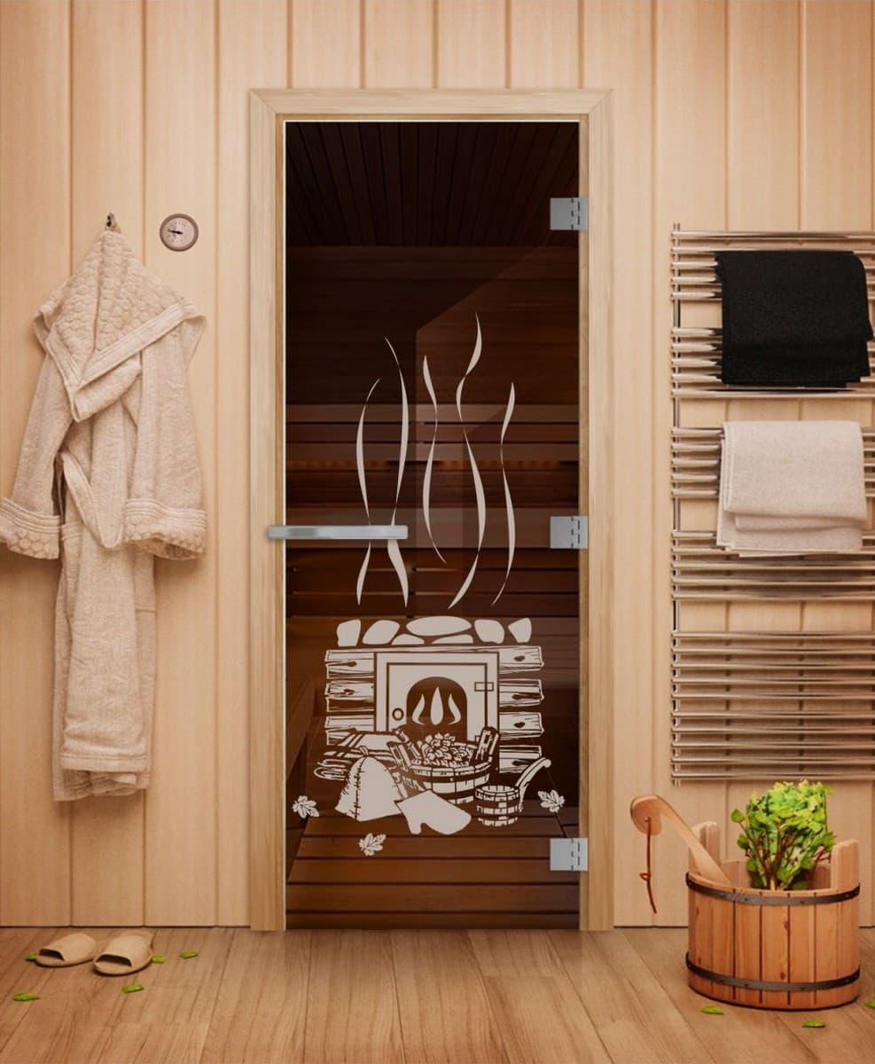 Стеклянная дверь для сауны Doorwood Эталон с Рисунком имеет привлекательный внешний вид, который украсит любой интерьер бани, купить ее можно в Минске с доставкой.