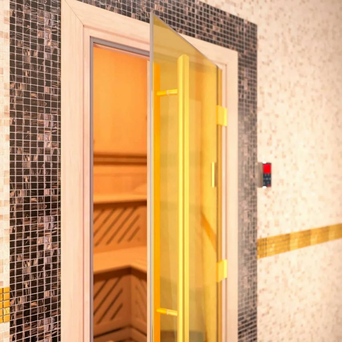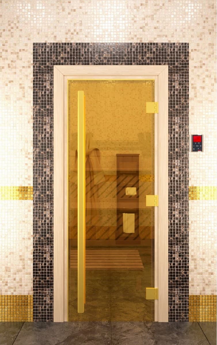 Стеклянная дверь для сауны Doorwood Престиж Золото имеет привлекательный внешний вид, который украсит любой интерьер бани, купить ее можно в Минске с доставкой.