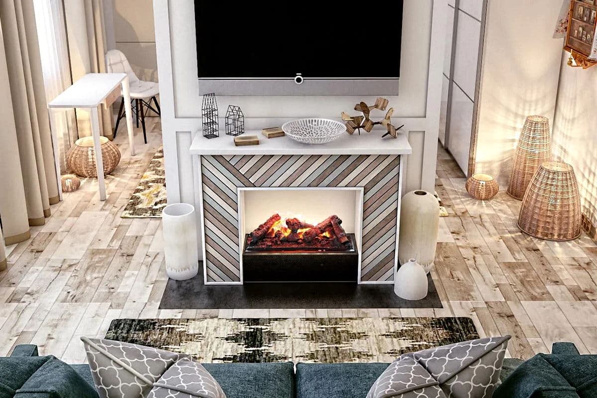 Уникальная конструкция камина делает искусственное пламя высоким и