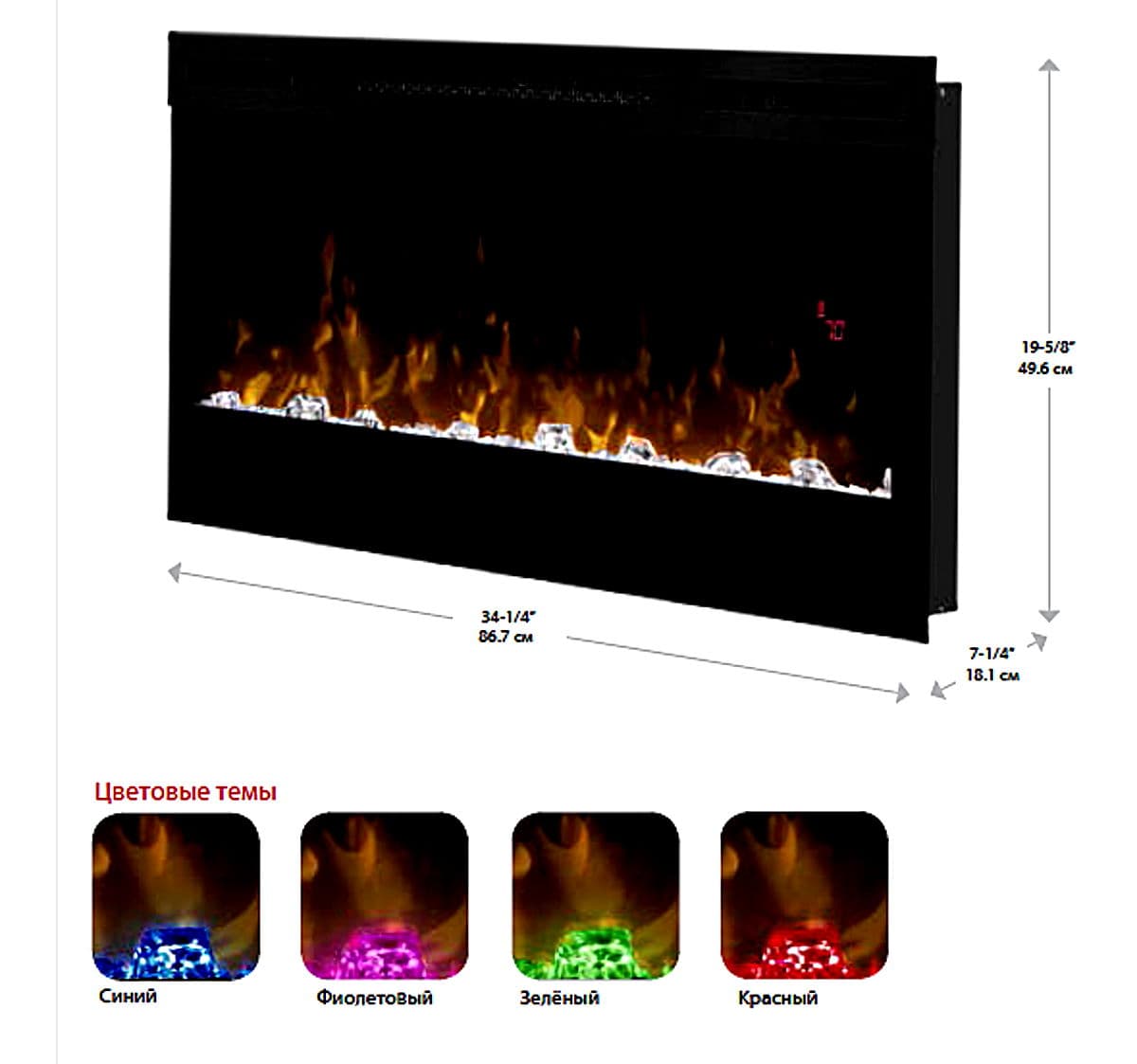 Линейный электрокамин Dimplex PRISM 34 (Призм 34) с эффектом реалистичных язычков пламени, тлеющих угольков и пеплом.