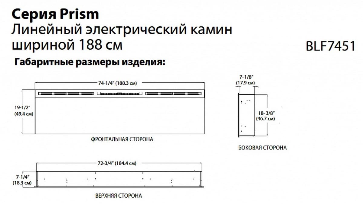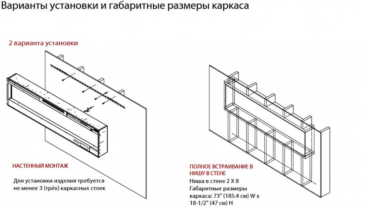 | Габариты очага (вхшхг),мм | 493х1883х179 мм |