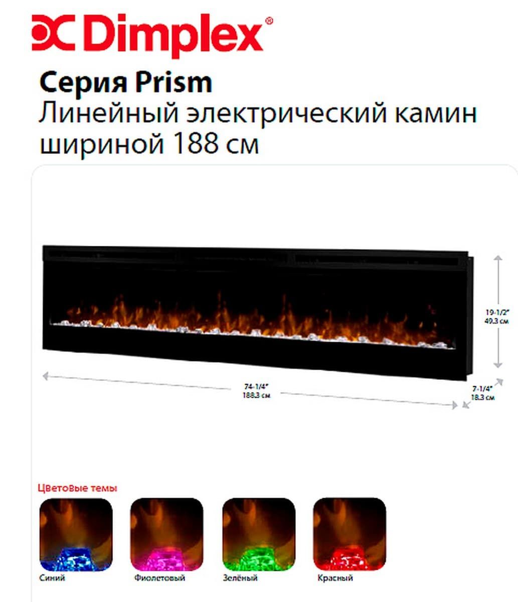 Линейный электрокамин Dimplex PRISM 74 (Призм 74) с эффектом реалистичных язычков пламени, тлеющих угольков и пеплом.
