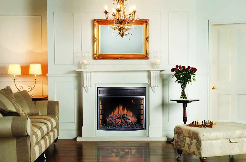 Это встраиваемая модель, которая будет одинаково удачно смотреться, как в стенной нише, так и внутри удачно подобранного каминного портала.