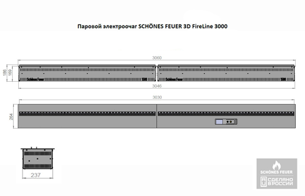 ✓ Встраиваемый размер (ШхВхГ): 3116х166х236