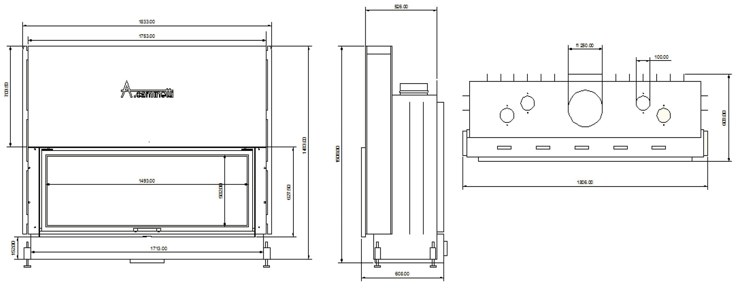 Габаритные размеры A.caminetti FLAT 150x50