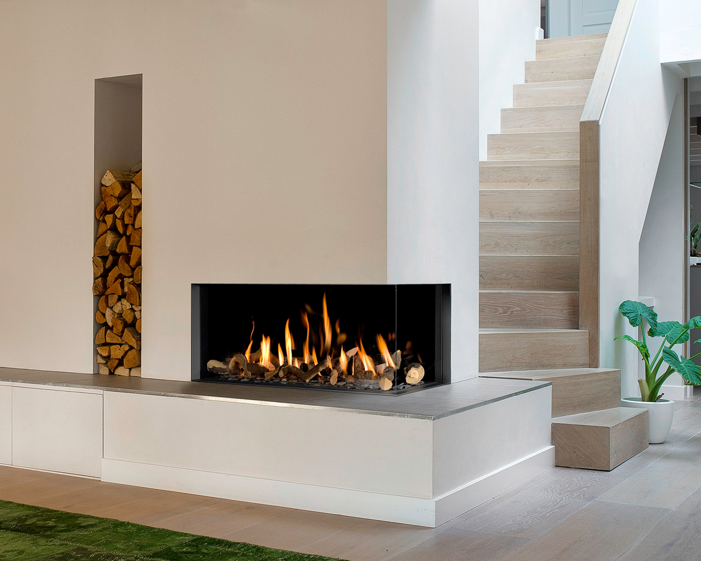 Газовый камин BRUNNER Eck 40/96/32 обладает мощностью от 7,1 до 9,6 кВт, что обеспечивает эффективный обогрев помещения. Размеры по стеклам двери 40 х 96 х 32 см, что позволяет ему гармонично вписаться в интерьер. Камера сгорания выполнена из черных стальных панелей, предлагается в двух вариантах: бесшовные стальные панели и стеклокерамические черные панели, что придает камину современный и элегантный вид.