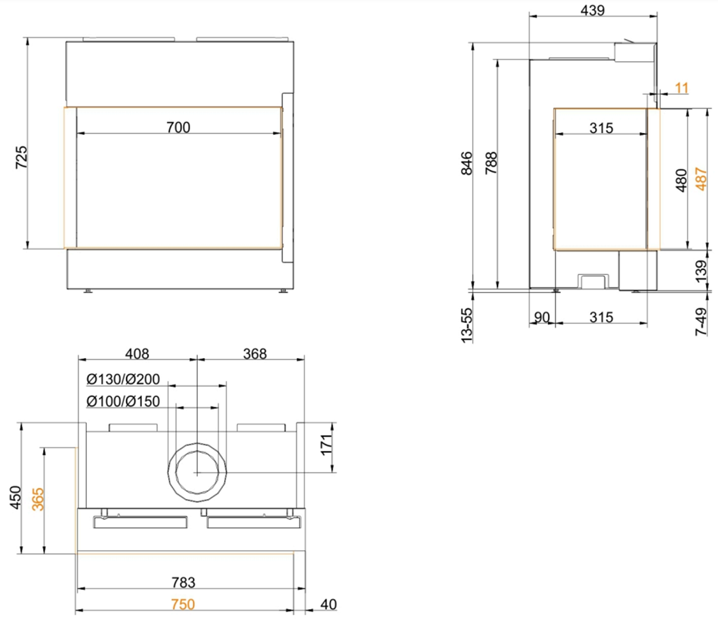 | Диаметр дымового патрубка | 130 - 200 мм |