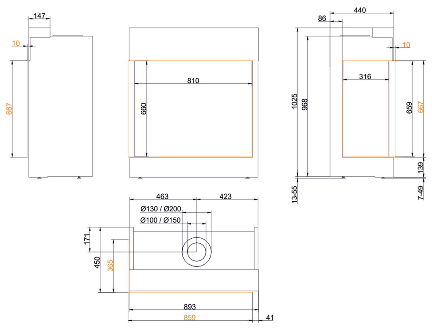 | Диаметр дымового патрубка | 130 - 200 мм |