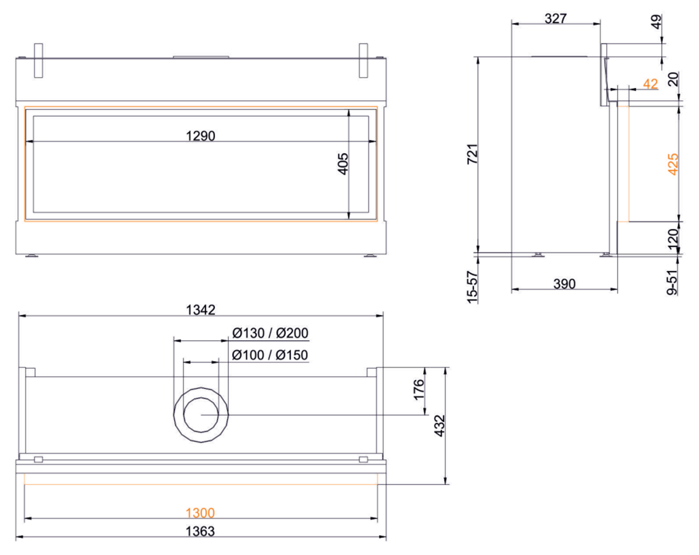 Чертеж газового камина flach Architektur 40/130