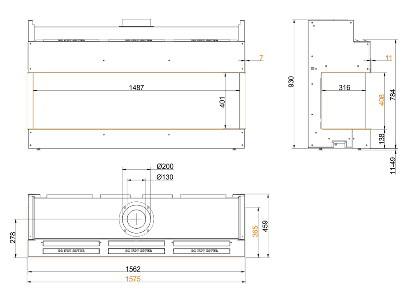 Чертеж газового камина Panorama 40/32/149/32