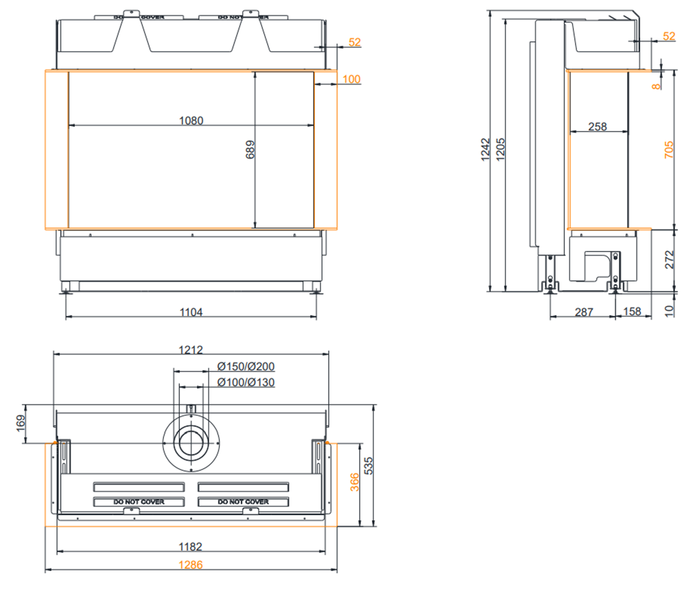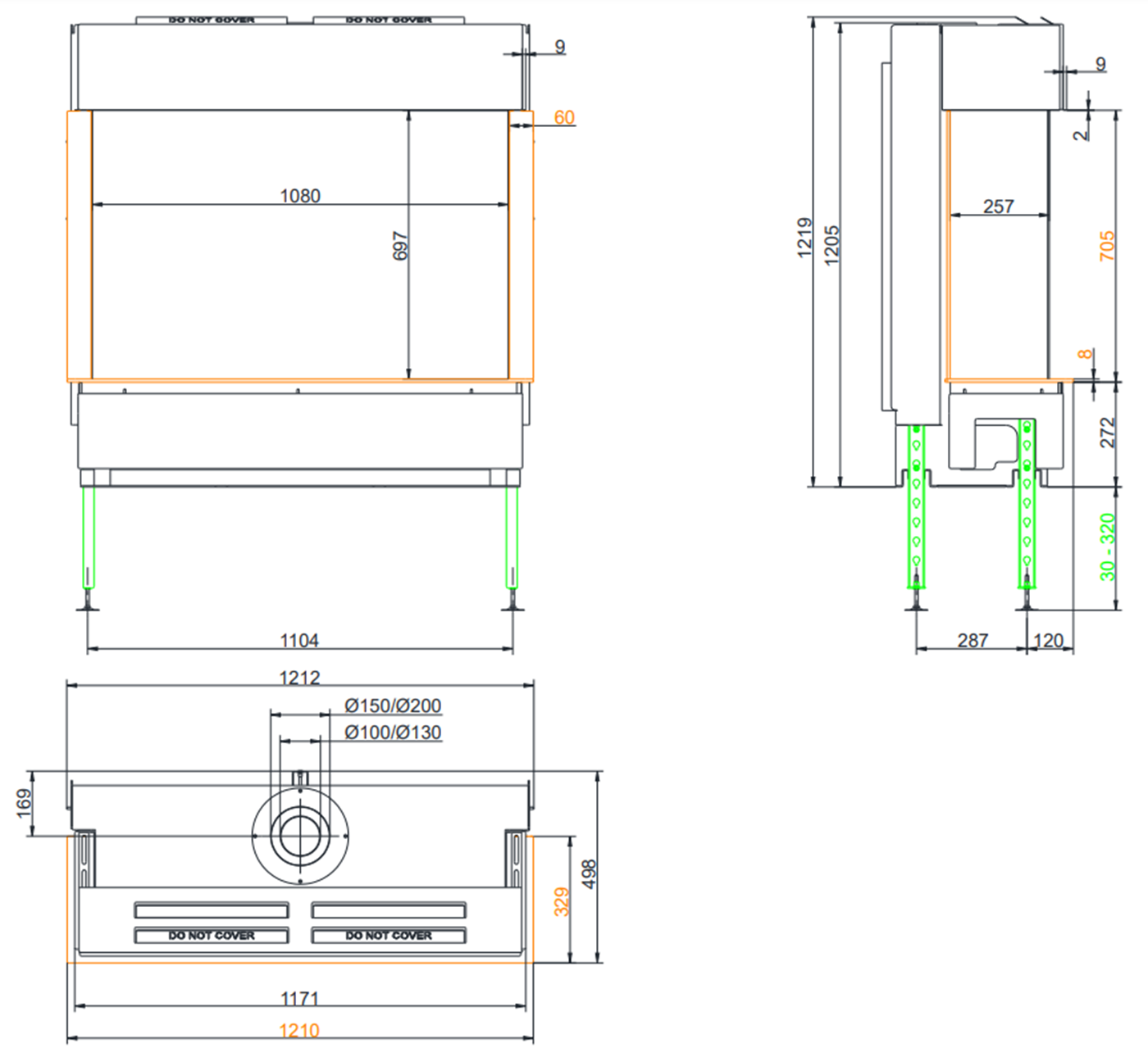 Чертеж газового камина Panorama BKG 70-25-110-25