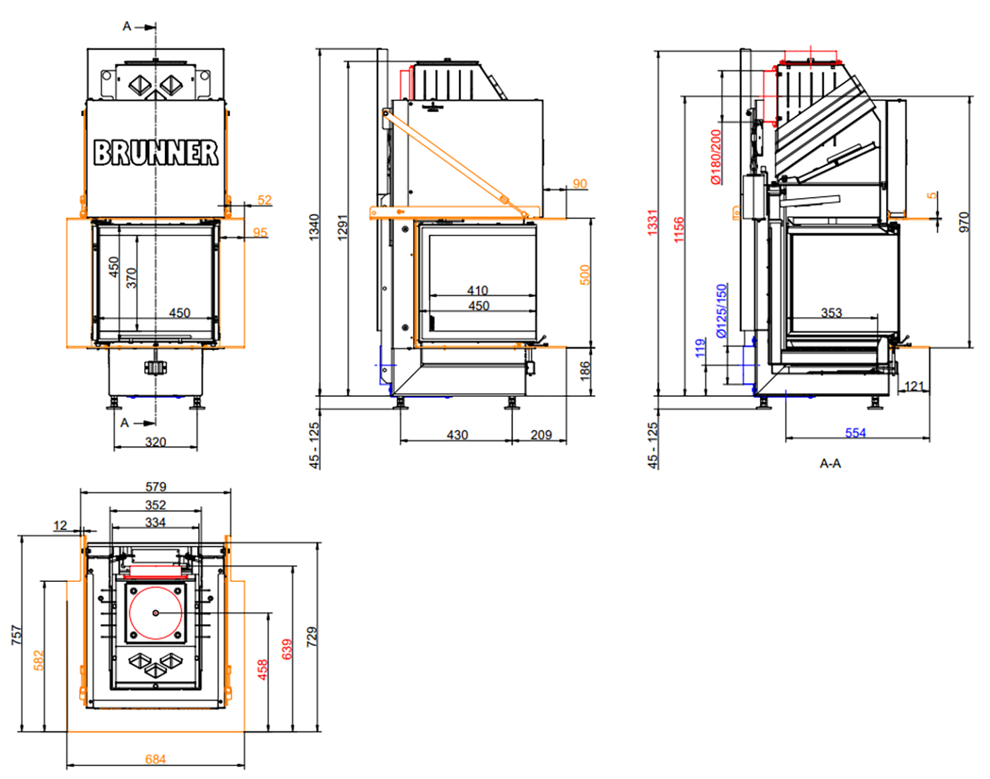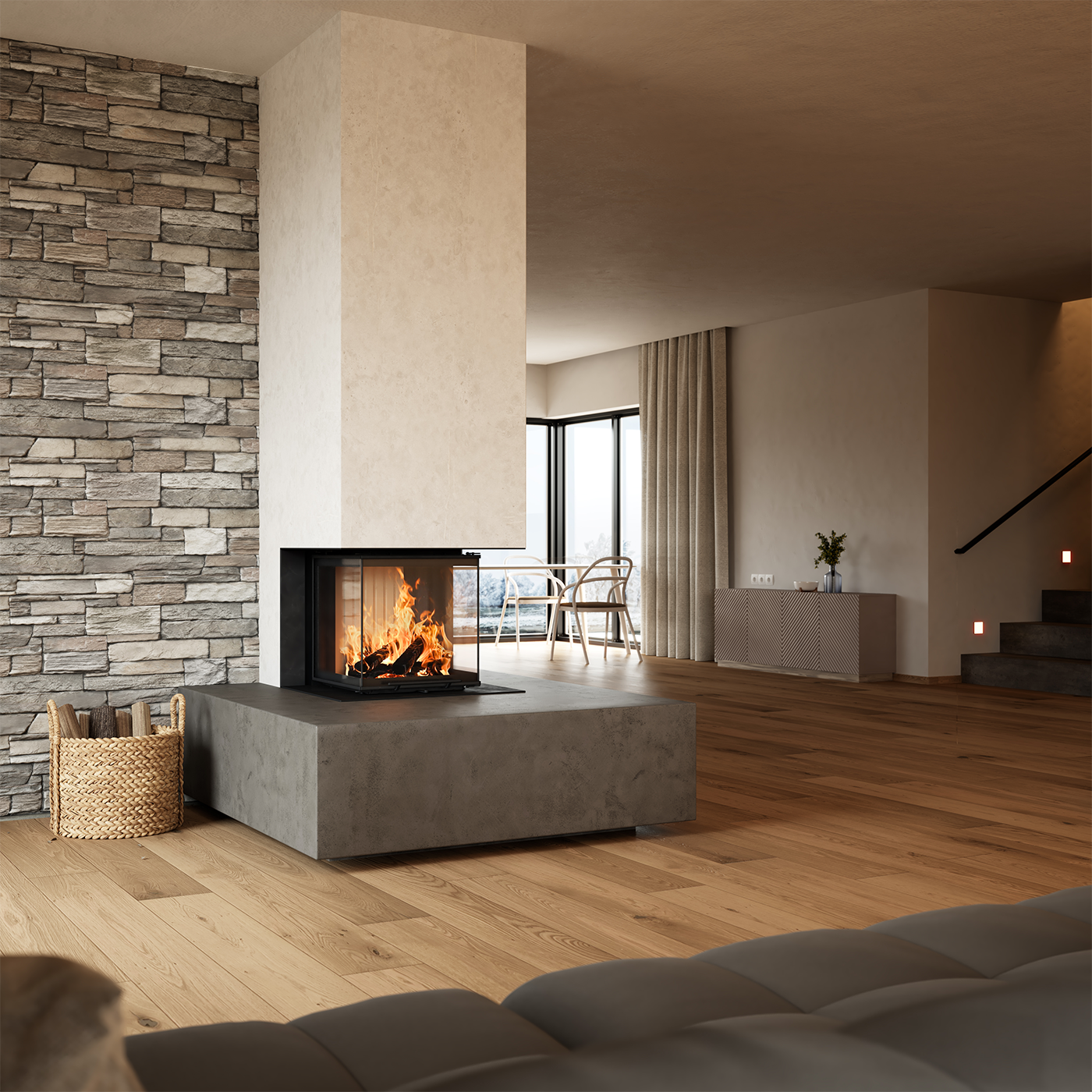 Brunner BKH Panorama 45-45-45-45 серии green - это трёхсторонняя топка с боковыми стёклами.