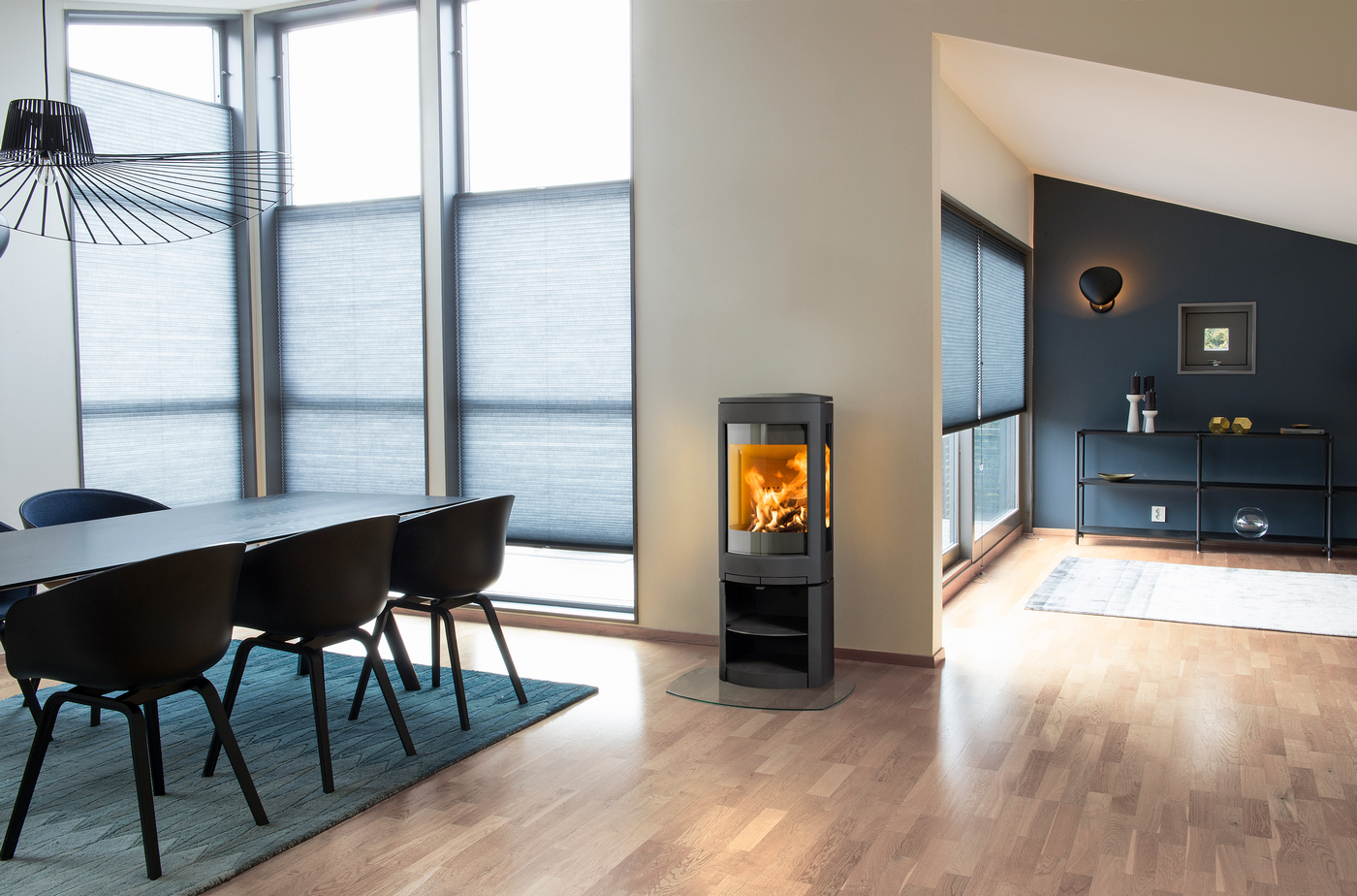 Jøtul F 371 характеризуется простой линией, у неё есть также основание с дополнительным местом под печью. В основании размещена полка, которая легко вынимается для увеличения пространства. Опционально к Jøtul F 371 можно добавить верхнюю стеатитовую плиту. Плита после нагрева возвращает тепло в течении длинного времени после того как огонь в камине потухнет. В основании есть также возможность установки чугунной дверцы.