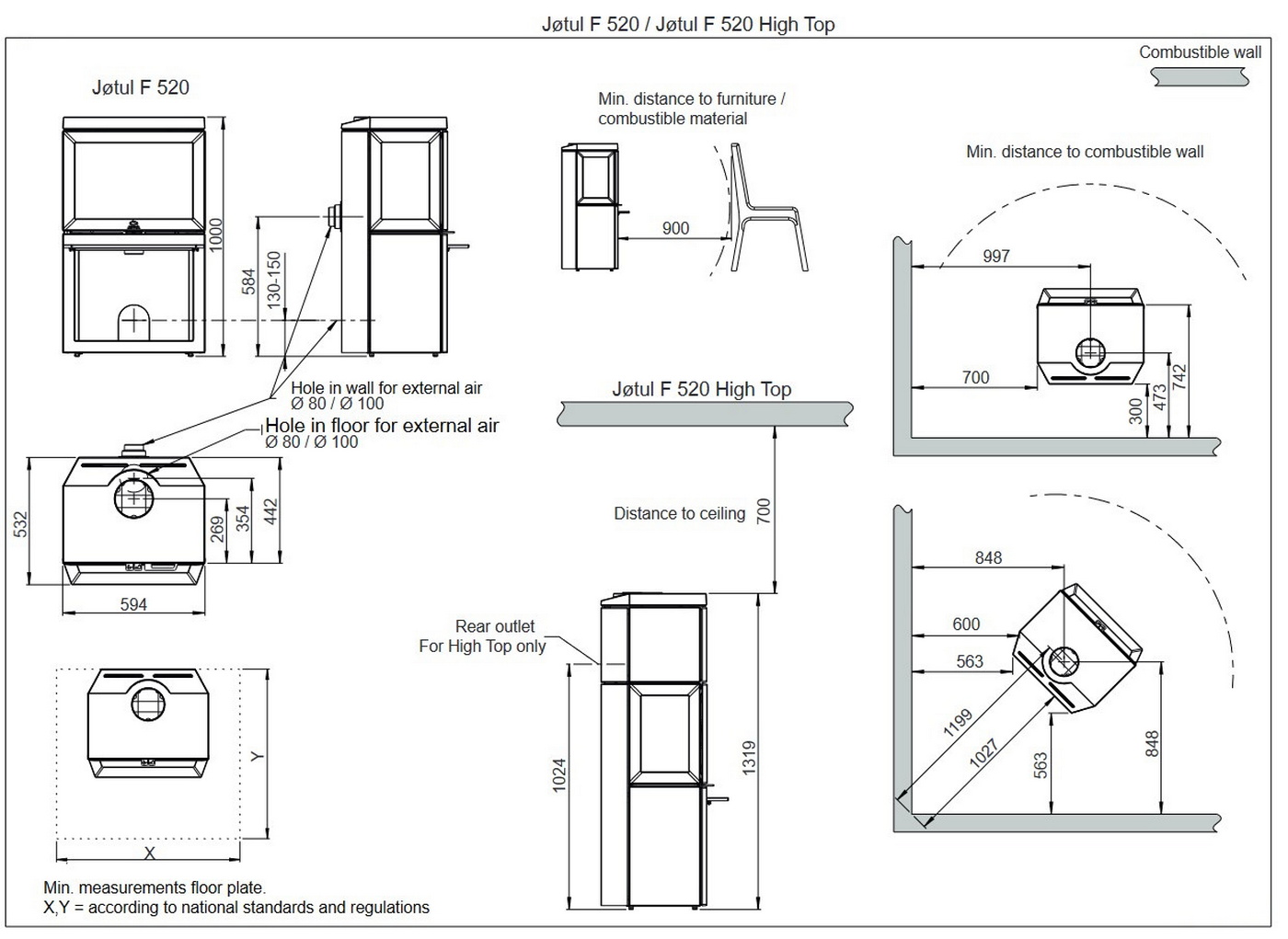 Jotul F 520 HT является технически совершенным продуктом. К примеру, в печи используется бесколосниковая технология сжигания дров. Камера сгорания герметичная, а воздух на горение поступает с улицы. Для эффективного сжигания дров используется технология CB (clean burn). С помощью нее воздух с улицы перед тем, как попасть в камеру, проходит во внутренних полостях печи большой путь, тем самым разогревается и поступает сверху, над дровами. Это позволяет сжигать значительную часть газа, который выделяется при горении топлива. К тому же, к F 520 High Top опционально можно заказать электронный оптимизатор горения Jotul ERS-01.