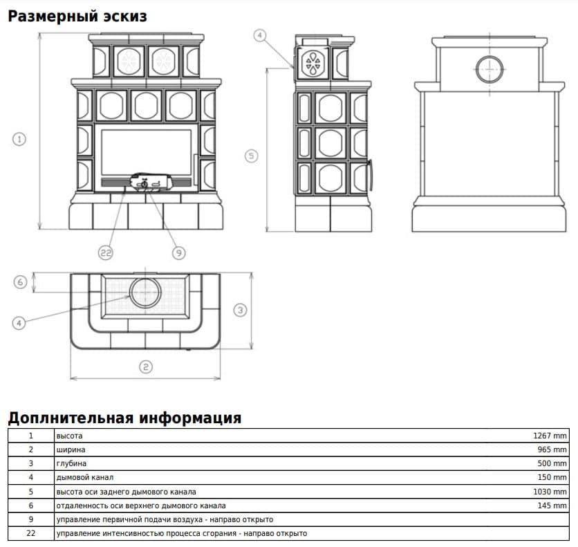 | Расположение печи-камина | пристенный |