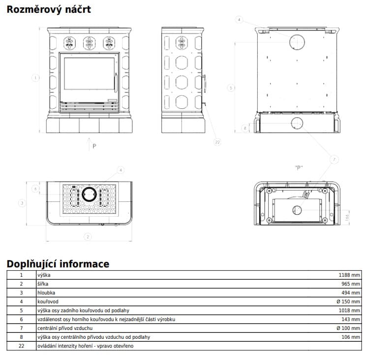 Эта большая печь очень популярна, её мощность достаточна для обогрева помещения объемом от 120 до 280 кубических метров.