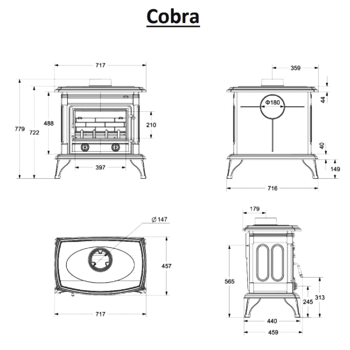 Печь-камин FireBird Cobra из чугуна мощностью 13 кВт это отопительная прибор эконом-класса, предназначен для отопления жилых помещений (дома, дачи и др.) объемом до 400 куб. м. Модель камина работает на дровах и топливных брикетах, устанавливается внутри помещении с подключением дымохода с длительностью горения одной закладки дров до 5 часов.