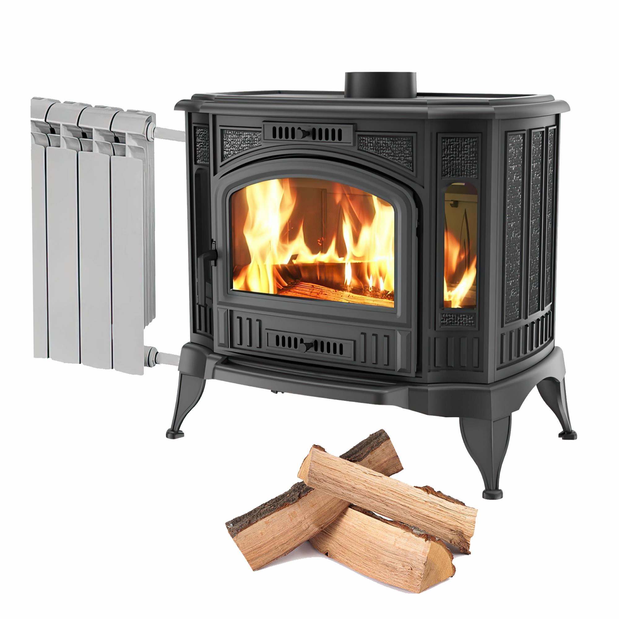 Печь-камин Kratki Koza K9 из чугуна с водяным контуром мощностью 10 кВт это отопительная прибор эконом-класса, предназначен для отопления жилых помещений (дома, дачи и др.) площадью до 350 куб. м. Модель камина работает на дровах и топливных брикетах, устанавливается внутри помещении с подключением дымохода с длительностью горения одной закладки дров до 5 часов.