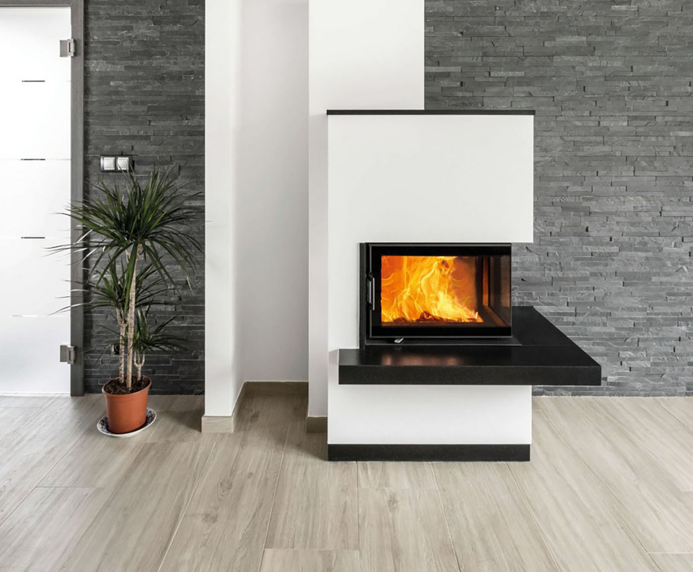 Опционально вы можете выбрать темную футеровку камеры из керамотта с черным пигментом Carbon, создавая уникальный дизайн вашего интерьера. Эффект "выгорания сажи" придает поверхности черных керамоттовых вставок особый шарм, оставляя их чистыми и элегантными. Также, имеется каминная топка 63x40x42 K 2.0 Left.