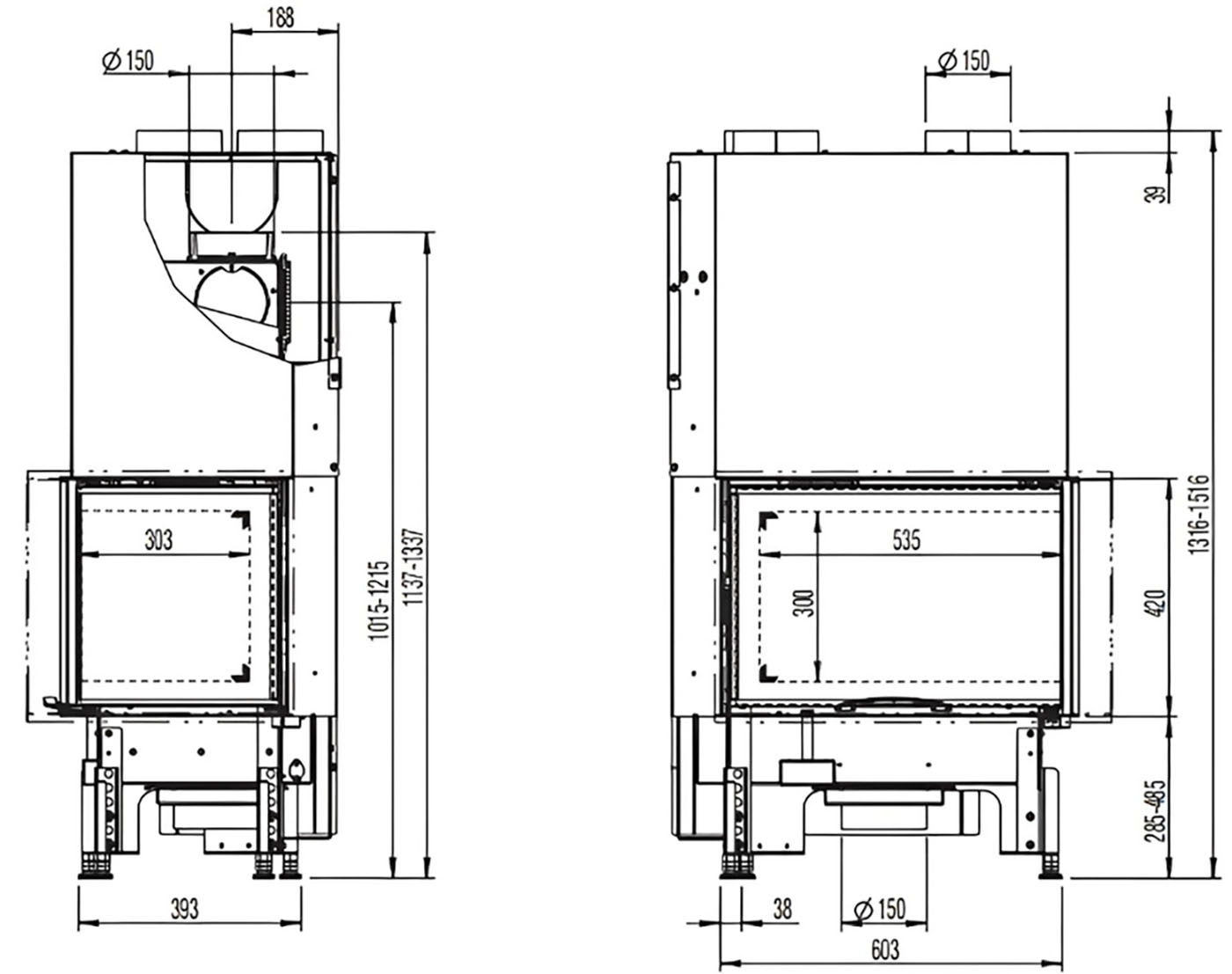 Каминная топка Austroflamm 63x40x42 S 2.0 Right- это идеальное решение для создания уюта и комфорта в вашем доме. Эта угловая вставка с подъемным механизмом представляет собой идеальное сочетание функциональности и стиля. С диаметром дымохода 150 мм, каминная топка Austroflamm обеспечивает превосходное тепловыделение и легко подключается к любому стандартному дымоходу. Двойные стекла эффективно ограничивают тепловое излучение, обеспечивая безопасность и комфорт.