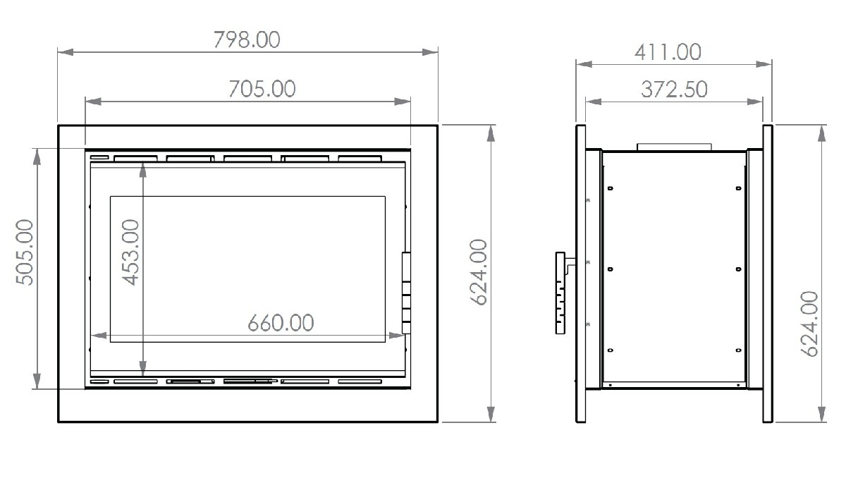 Каминная топка A.caminetti Cassette Nordic W70 - прямая каминная топка итальянской компании A.caminetti. Топка изготовлена из холоднокатаной стали марки DC01 (3 мм) с финишным огнепрочным покрытием, гарантирующее надежное и безопасное использование не один десяток лет. Представленная модель оборудована боковой дверцей из специального профиля, что обеспечивает жесткость и долговечность. Термостойкая стеклокерамика, установленная на двери, прекрасно выдерживает температуру до 800°C без деформаций и трещин.