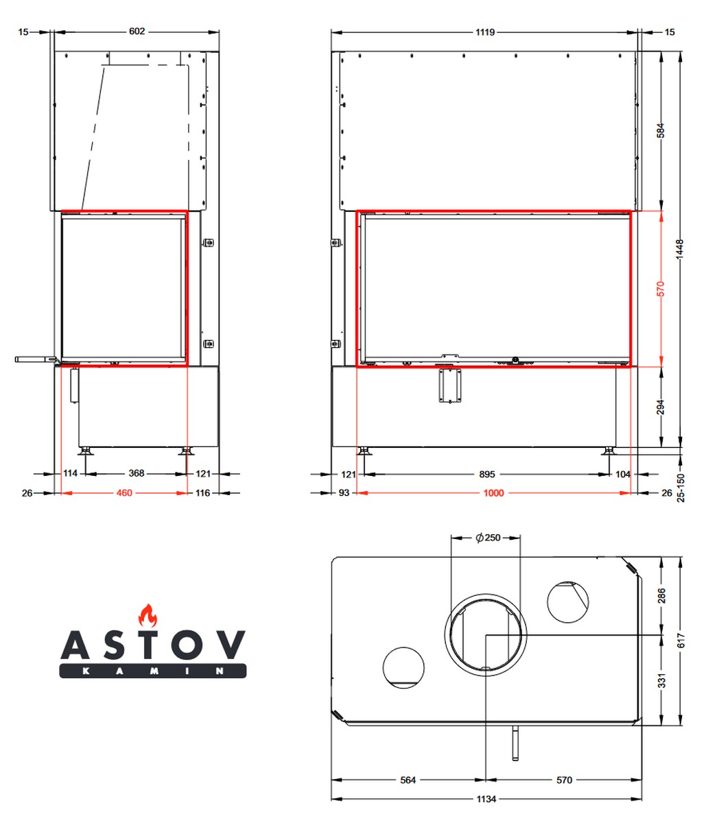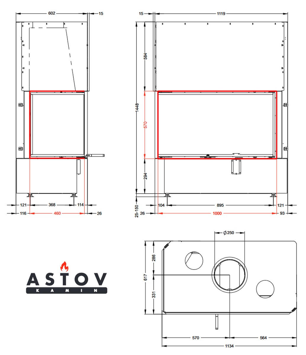Каминная топка АСТОВ П2С 10057 L/P - левый и правый вариант углового расположения