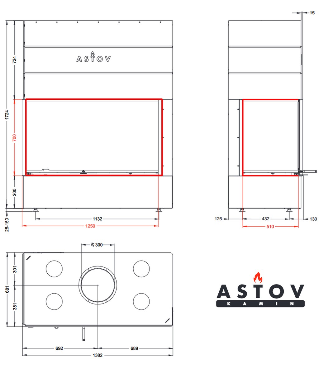 Каминная топка АСТОВ П2С 12570 производитель Astov