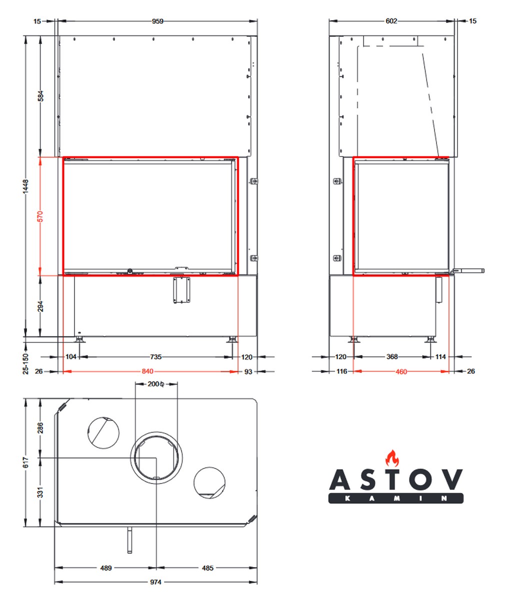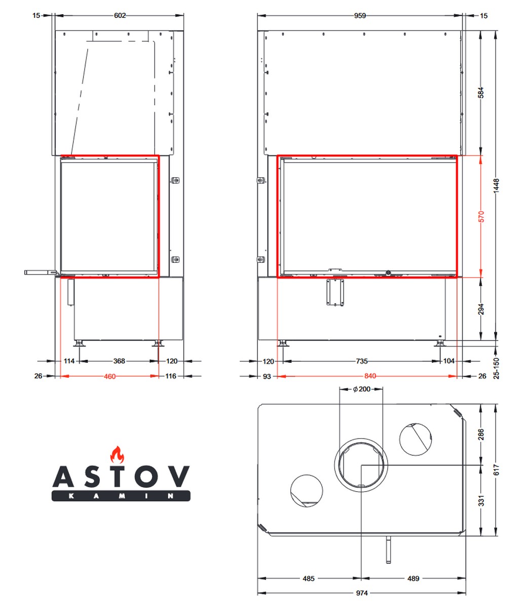 Каминная топка АСТОВ П2С 8457 L/P - левый и правый вариант углового расположения
