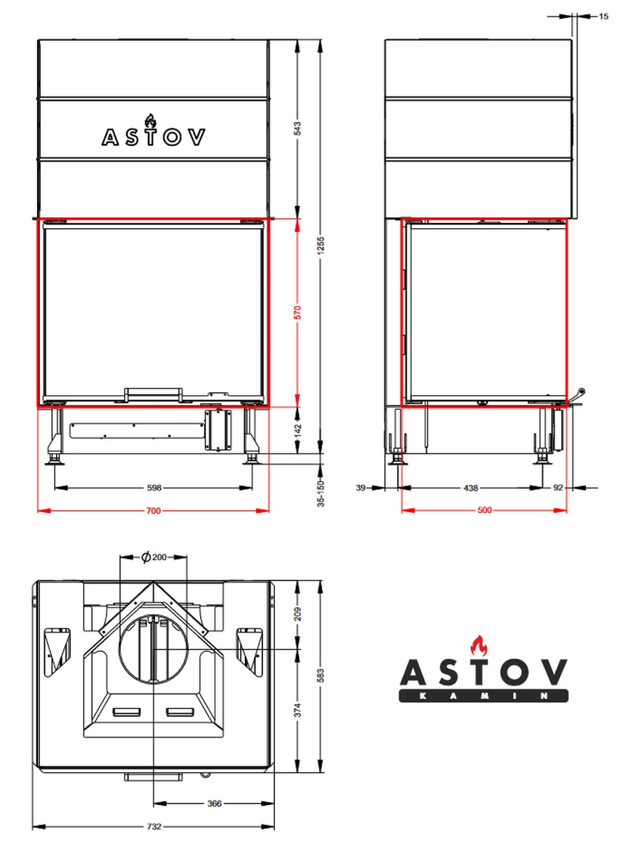 Трехсторонняя каминная топка АСТОВ П3С 7057