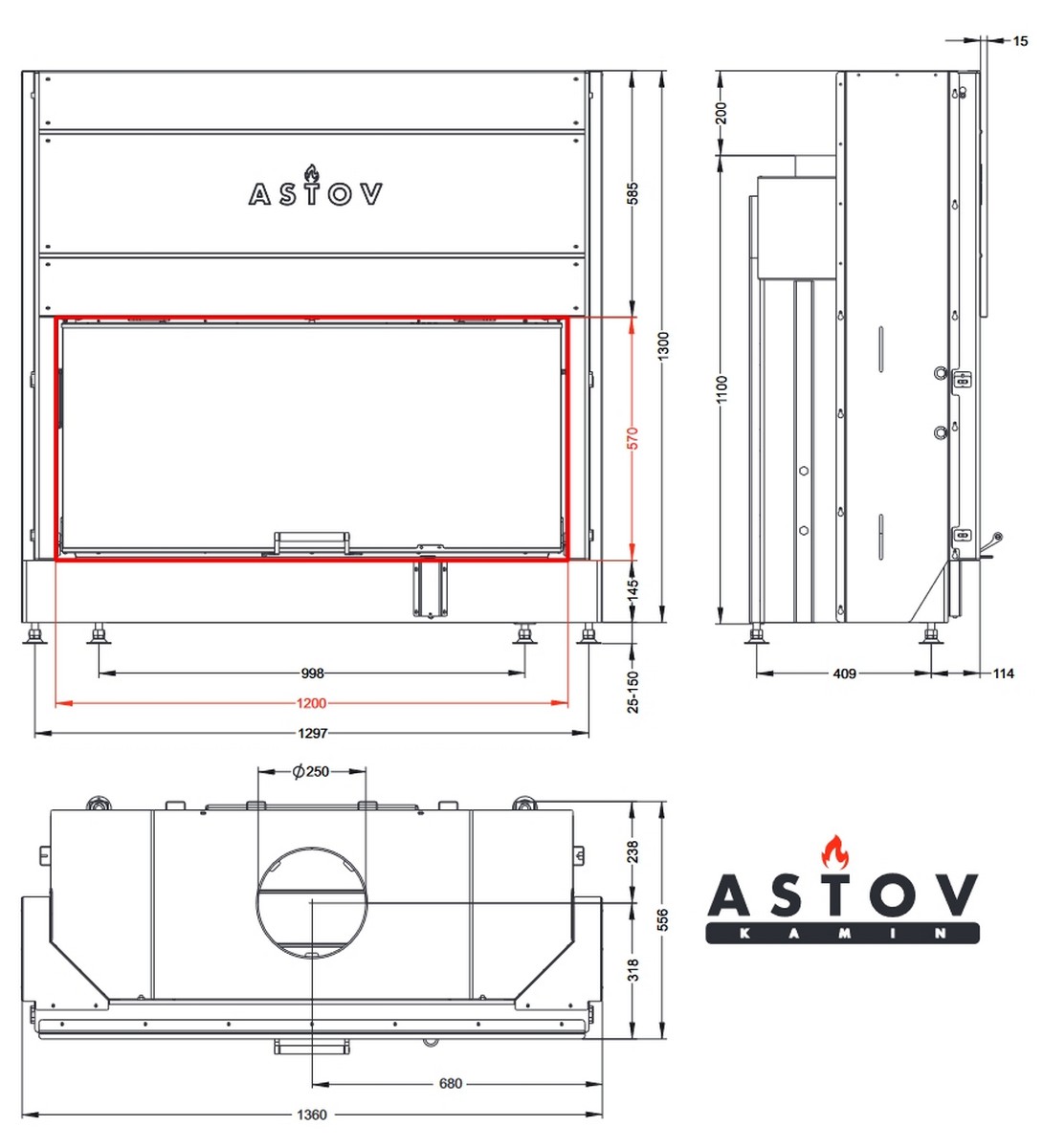 Каминная топка АСТОВ ПС 12057 производитель Astov