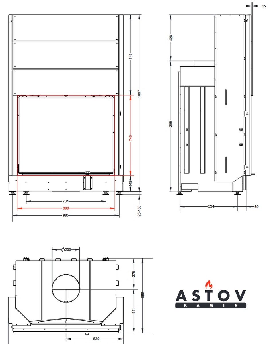 Каминная топка АСТОВ ПС 9074 У производитель Astov